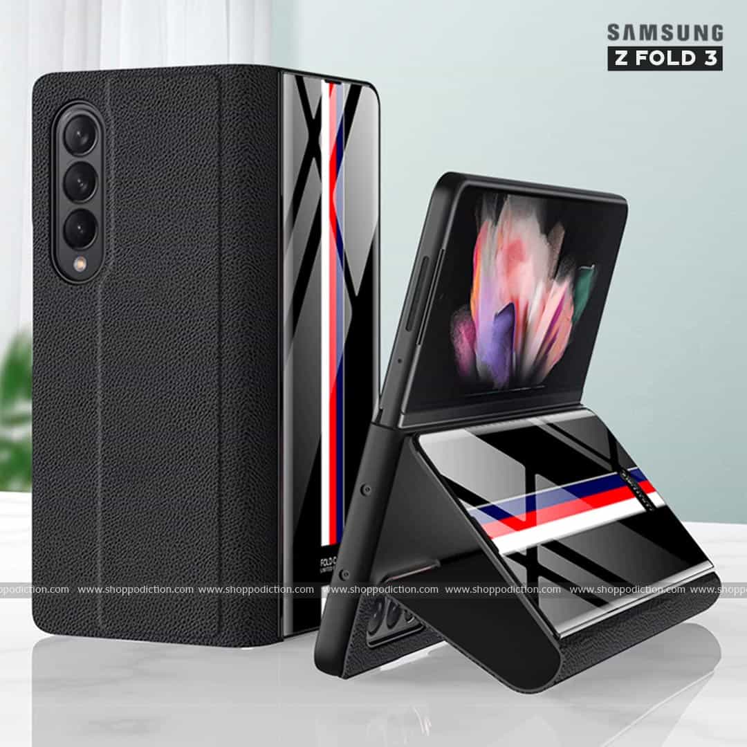 Luxury Tempered Glass Leather Flip Case Samsung Z Fold 3